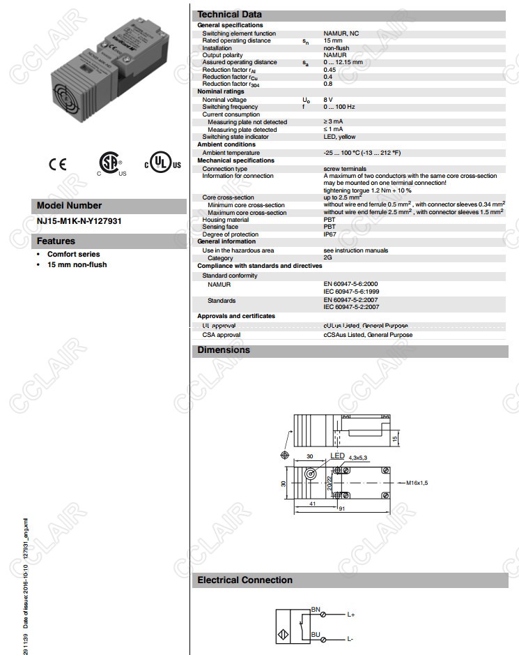 NJ15-M1K-N-Y127931,電感式接近開(kāi)關(guān)