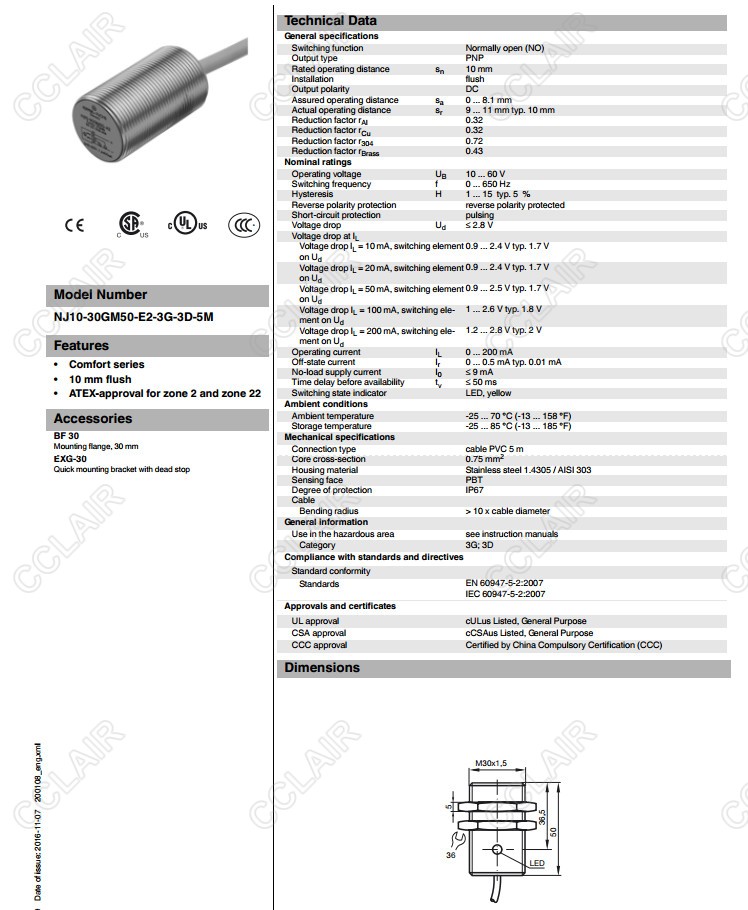 NJ10-30GM50-E2-3G-3D-5M,電感式接近開(kāi)關(guān)