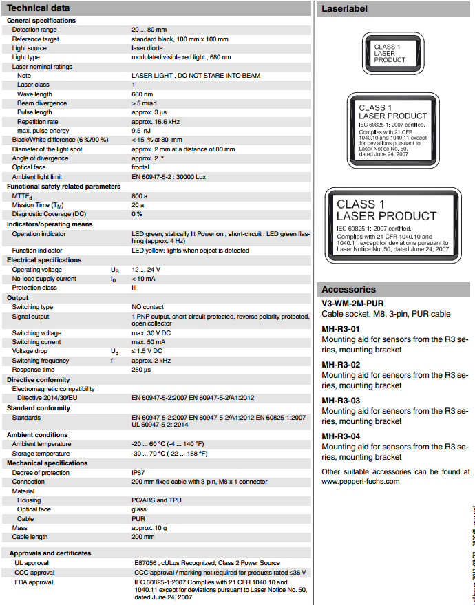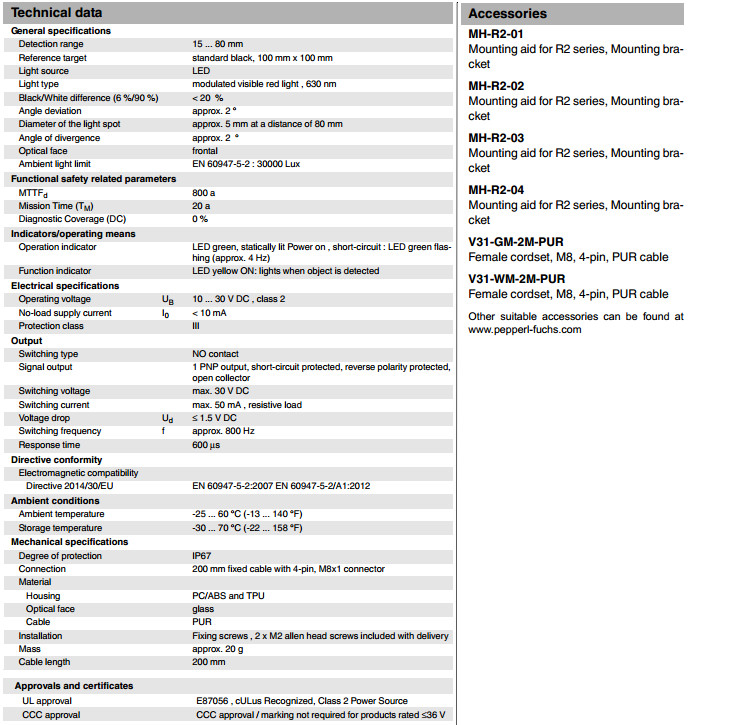 OBT80-R2-E2-0,2M-V31,OBT80-R3-E2-0,2M-V3-L漫反射型傳感器