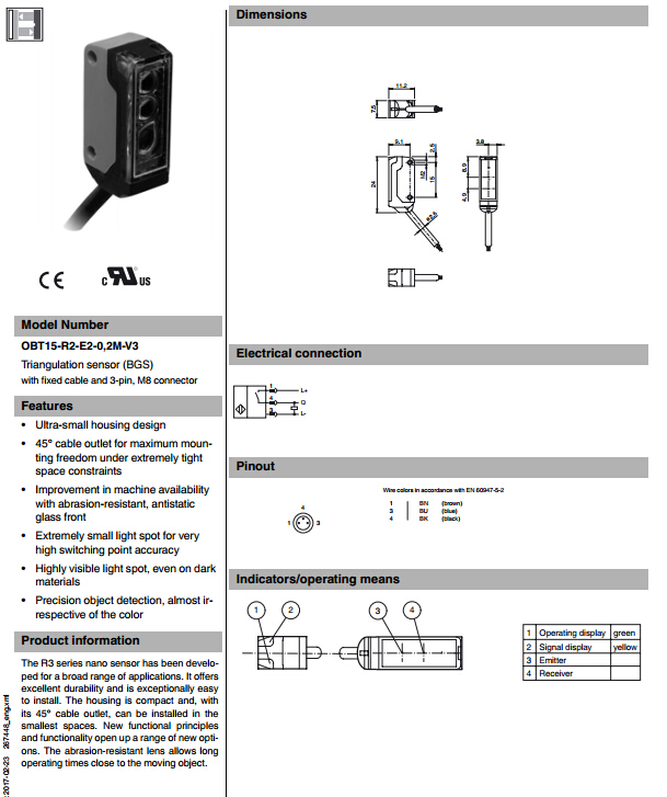 OBT15-R2-E2-0,2M-V3,漫反射型傳感器