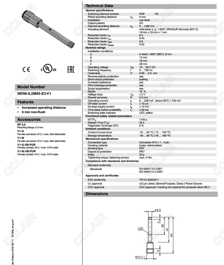 NEN6-6,5M45-E3-V1,電感式接近開(kāi)關(guān)