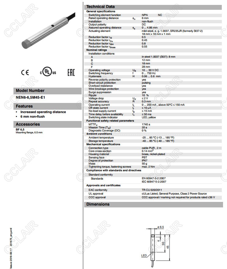 NEN6-6,5M45-E1,電感式接近開關(guān)
