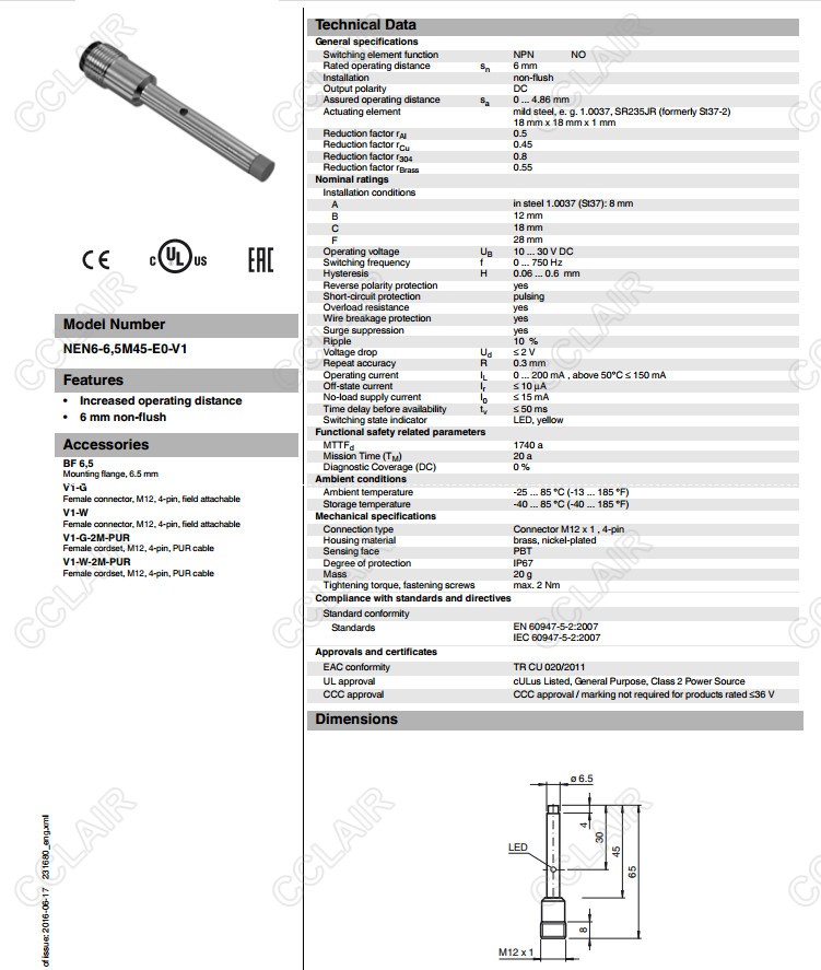 NEN6-6,5M45-E0-V1,電感式接近開(kāi)關(guān)