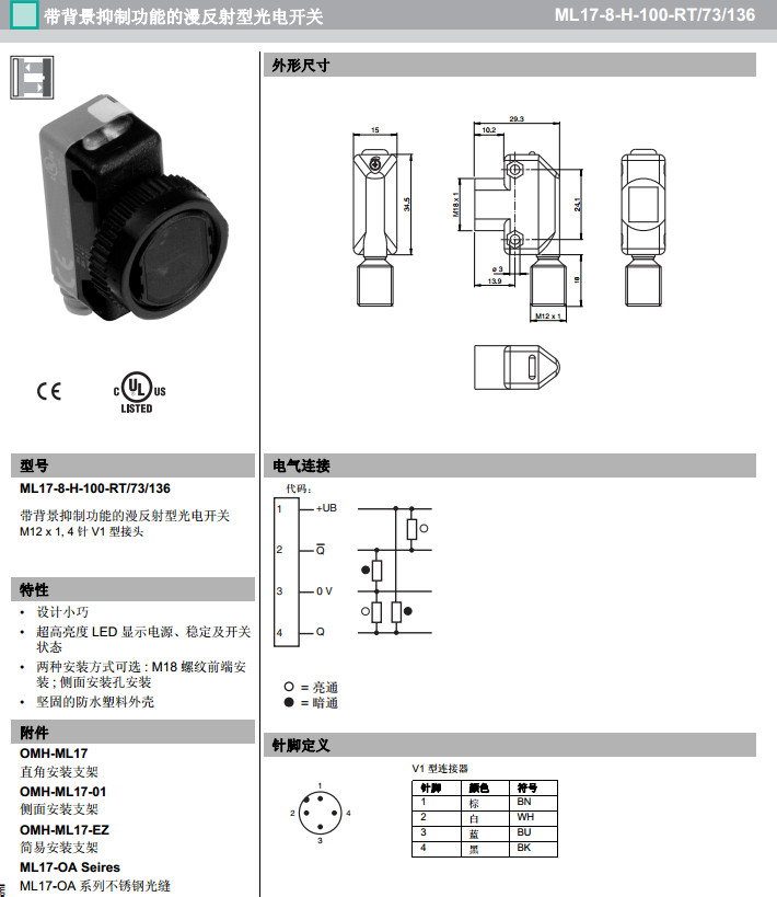 ML17-8-H-100-RT/73/136漫反射型傳感器