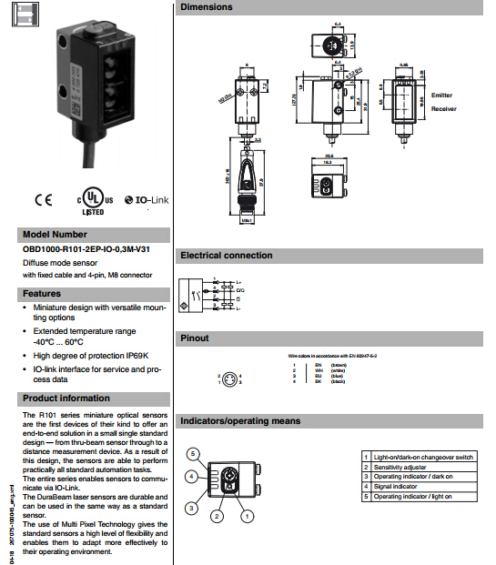 OBD1000-R101-2EP-IO-0,3M-V31.漫反射型傳感器