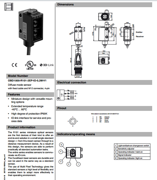 OBD1000-R101-2EP-IO-0,3M-V1,漫反射型傳感器