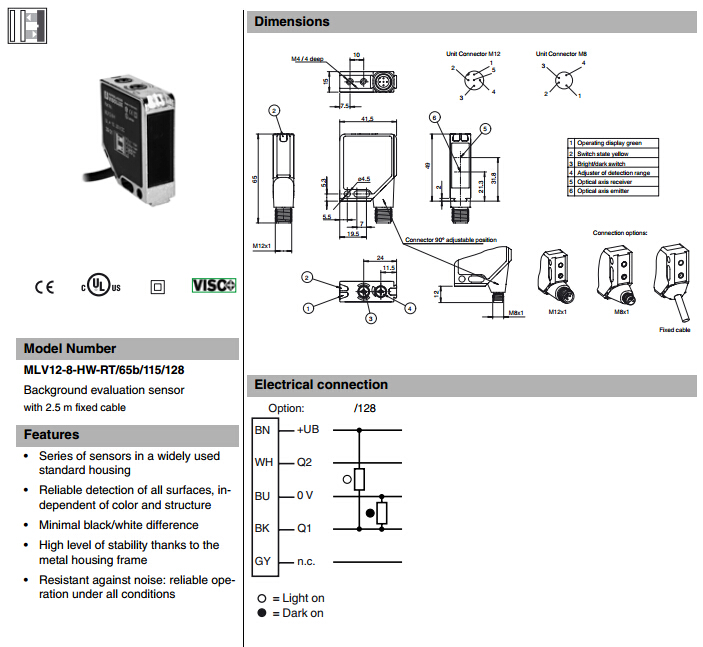 MLV12-8-HW-RT/65b/115/128,漫反射型傳感器