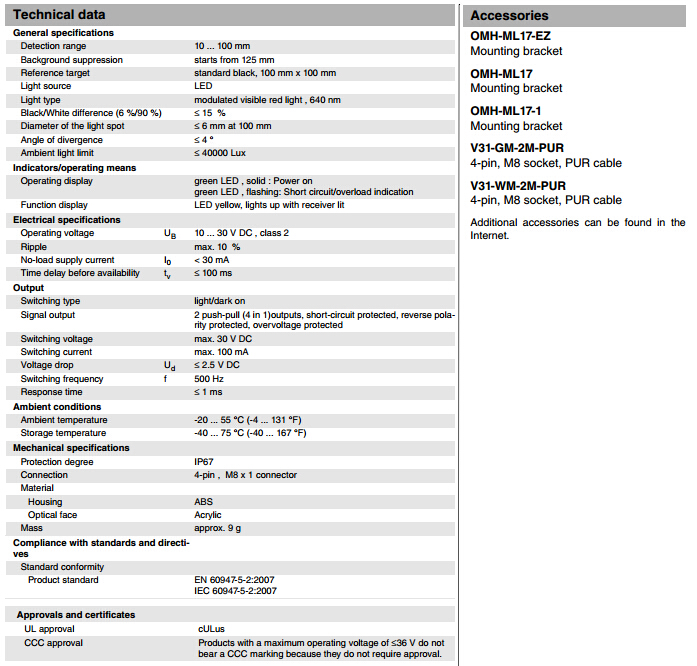 ML17-8-H-100-RT/136/143漫反射型傳感器