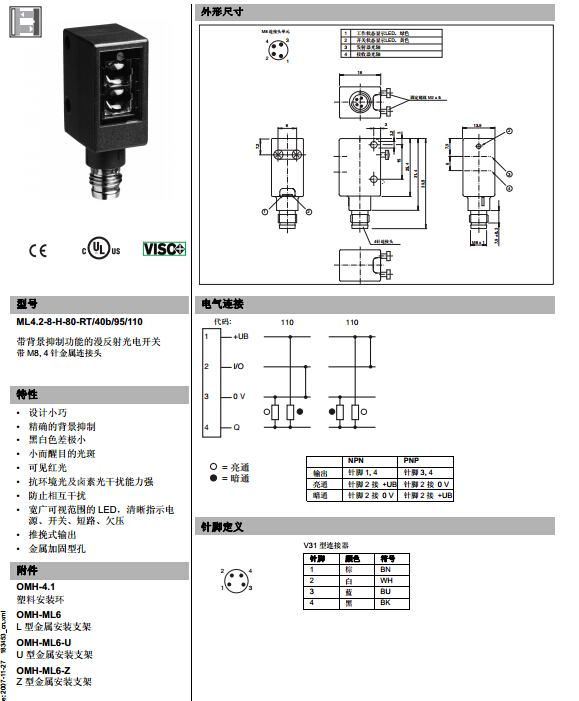 ML4.2-8-H-80-RT/40b/95/110,漫反射型傳感器