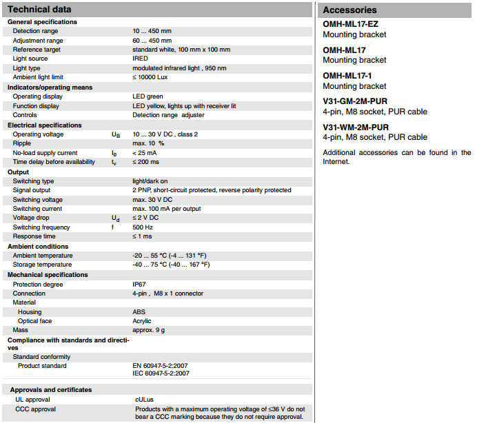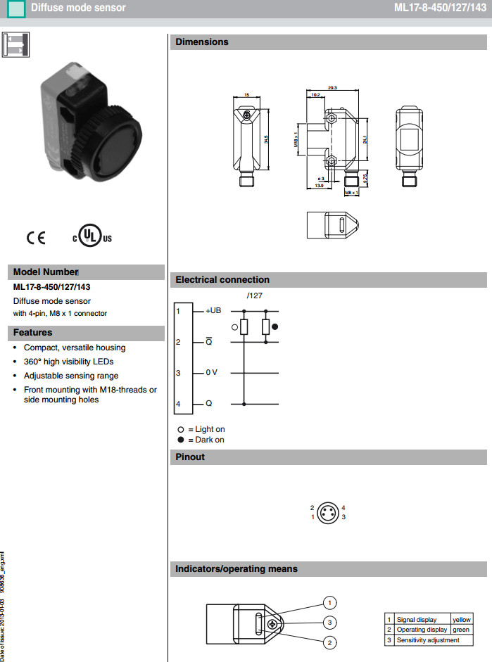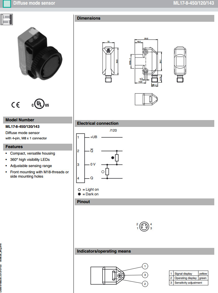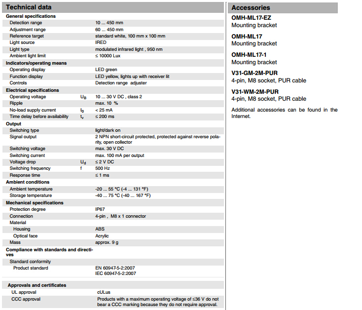 ML17-8-450/120/143,ML17-8-450/127/143漫反射型傳感器