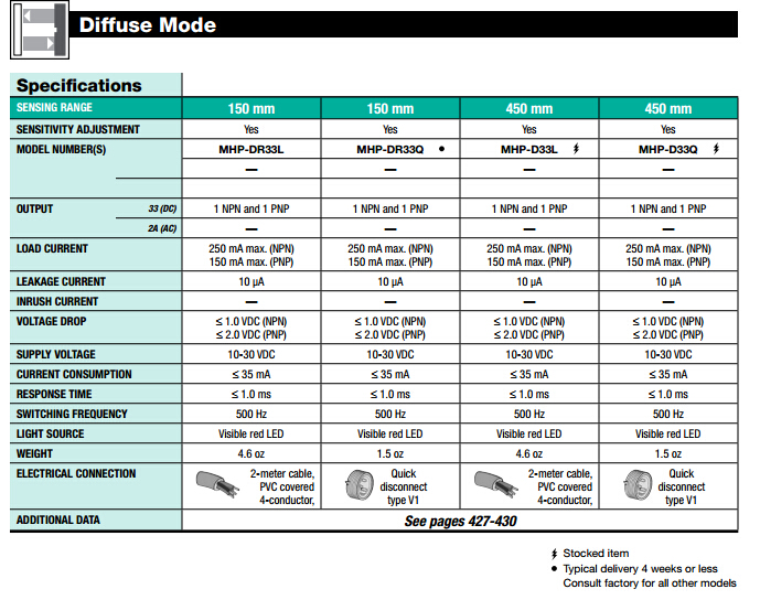 MHP-D33L,MHP-D33Q,,MHP-DR33L,MHP-DR33Q漫反射型傳感器