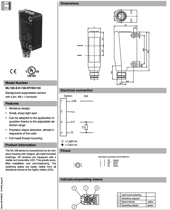 ML100-8-H-100-RT/95/103,漫反射型傳感器