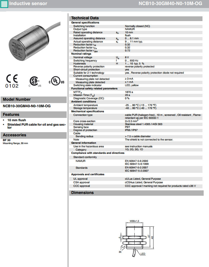 NCB10-30GM40-N0-10M-OG,NCB10-30GM40-N0-15M-OG