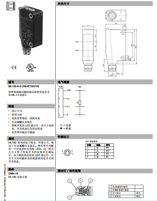 ML100-8-H-350-RT/95/102,漫反射型傳感器