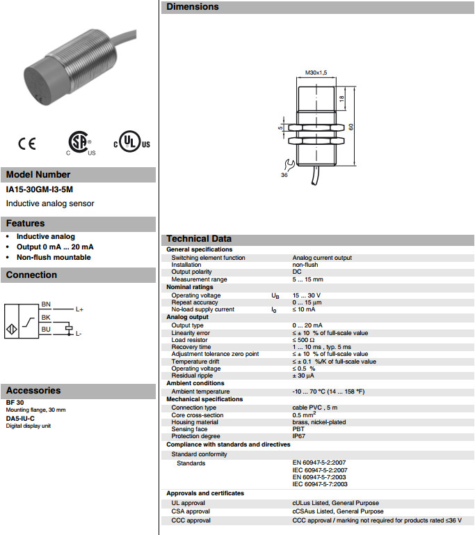 IA15-30GM-I3-5M電感式接近開關(guān)