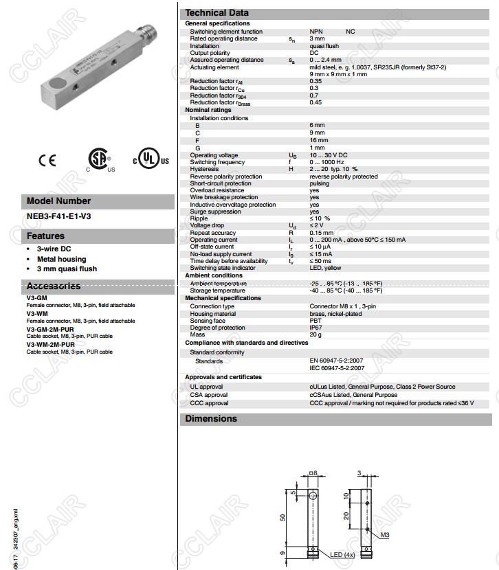 NEB3-F41-E1-V3,NEB3-F41-E3-V3,電感式接近開(kāi)關(guān)