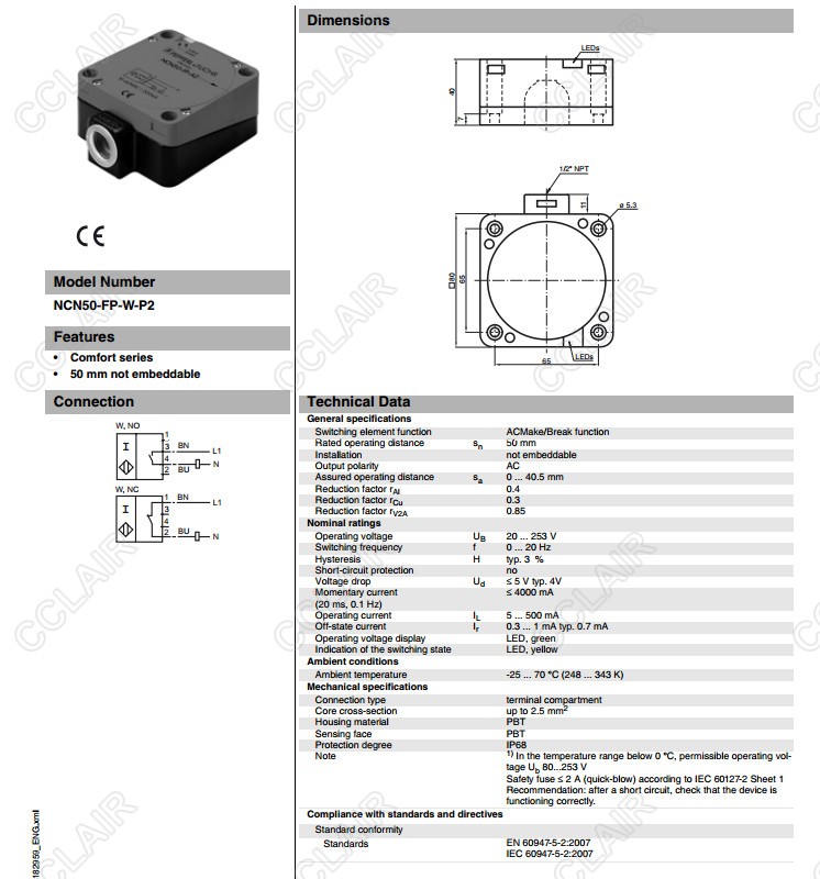 NCN50-FP-A2-P4,NCN50-FP-W-P2,電感式接近開(kāi)關(guān)