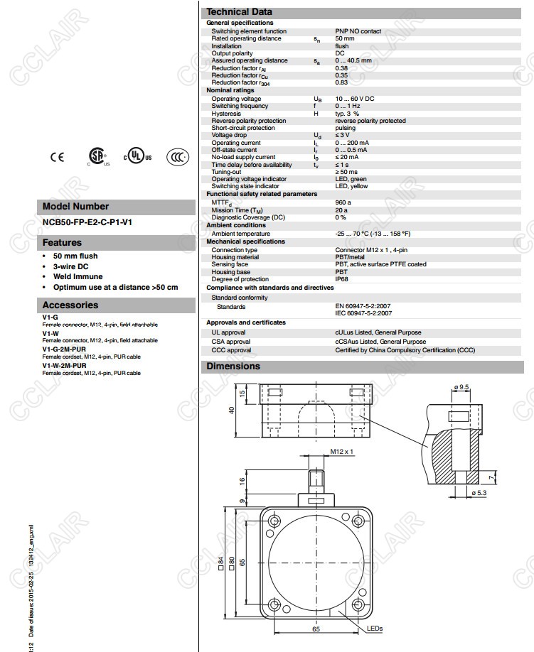 NCB50-FP-E2-C-P1-V1,電感式接近開關