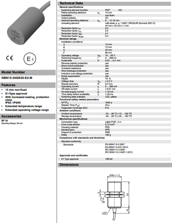 NBN15-30GK50-E2-M電感式接近開關(guān)
