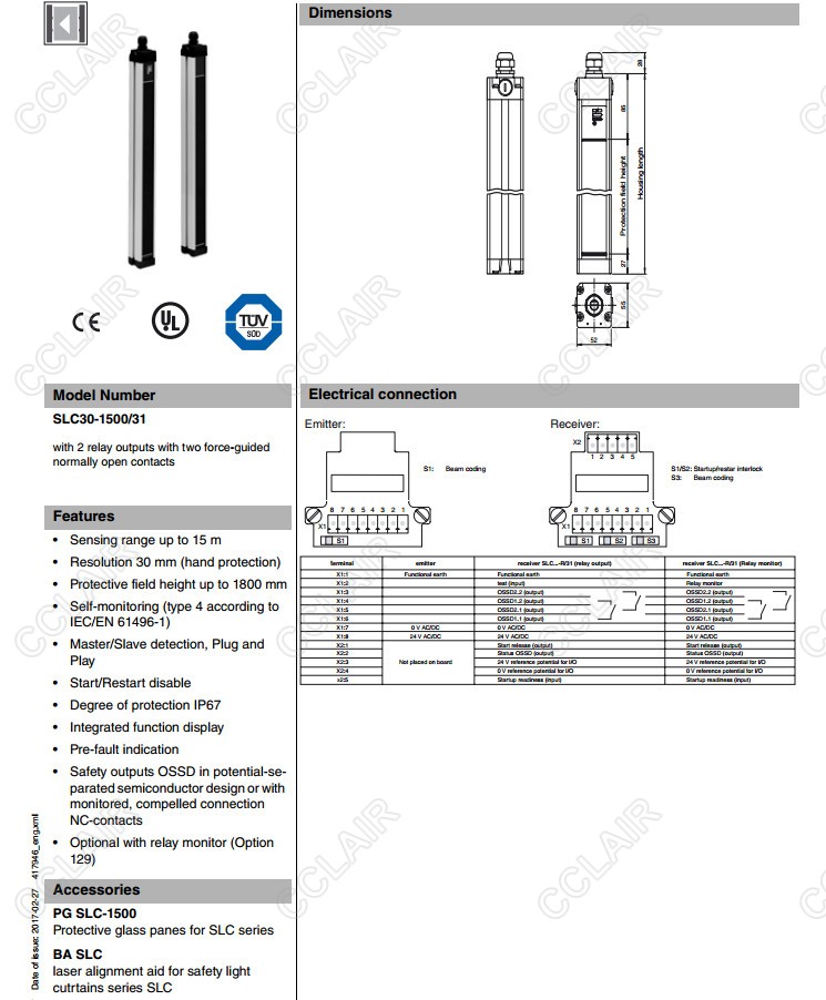 SLC30-150/31,SLC30-1500,SLC30-1500-S,SLC30-1500/31,SLC30-1650,SLC30-1650-S,安全光柵