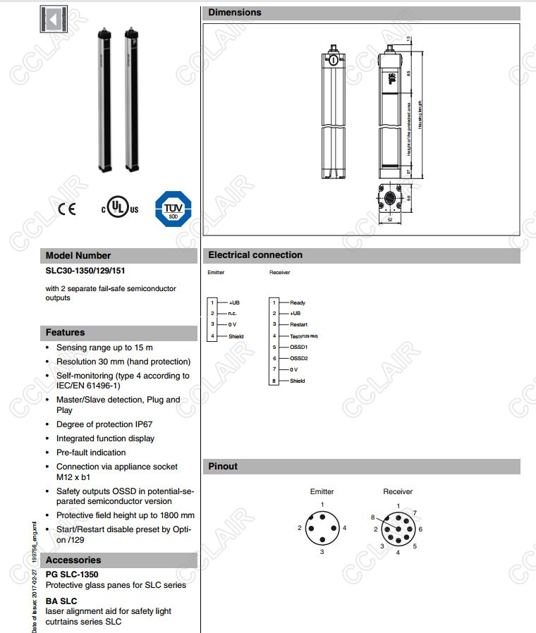 SLC30-1200/151,SLC30-1200/151,SLC30-1350/129/151,SLC30-1350/151,SLC30-150/129/151,安全光柵