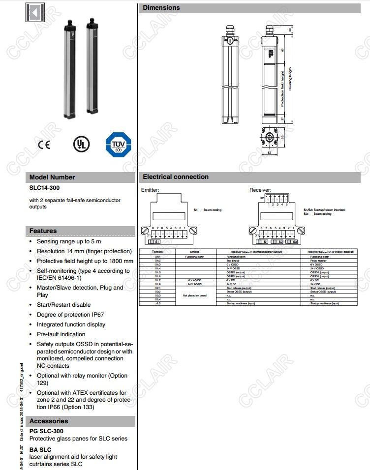 SLC14-1650/130,SLC14-1800/130,SLC14-1800/31/130,SLC14-300,SLC14-300-S,安全光柵