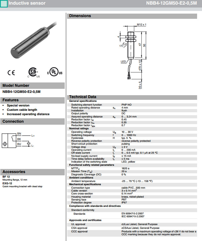 NBB4-12GM50-E2-0,5M感應式傳感器