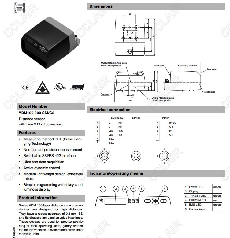 VDM100-300-SSI/G2,VDM100-50-P/G2/146,VDM100-50-SSI/G2/146,測距傳感器