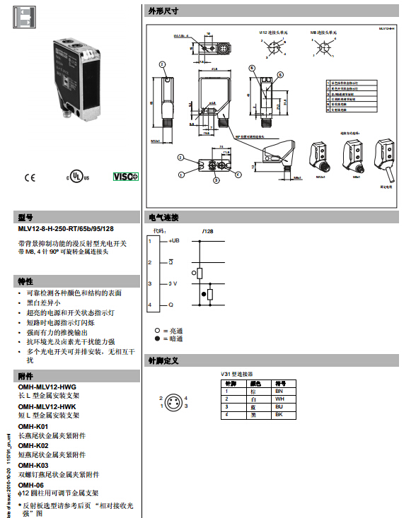 MLV12-8-H-250-RT/65b/95/128,漫反射型傳感器