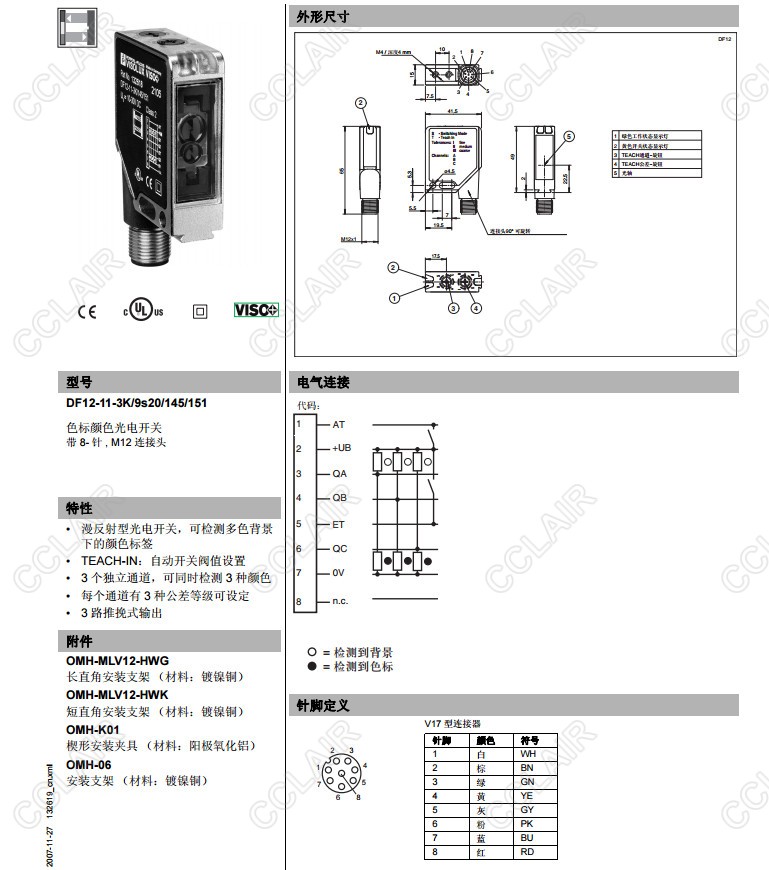 DF12-11-3K/9s20/145/151,顏色傳感器