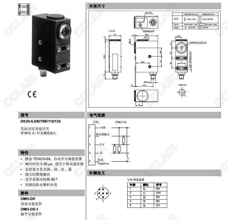 DK20-3009/B/110/124,DK20-9,5/9S20/110/124,DK20-9,5/B/79B/110/124,色標(biāo)對(duì)比度傳感器
