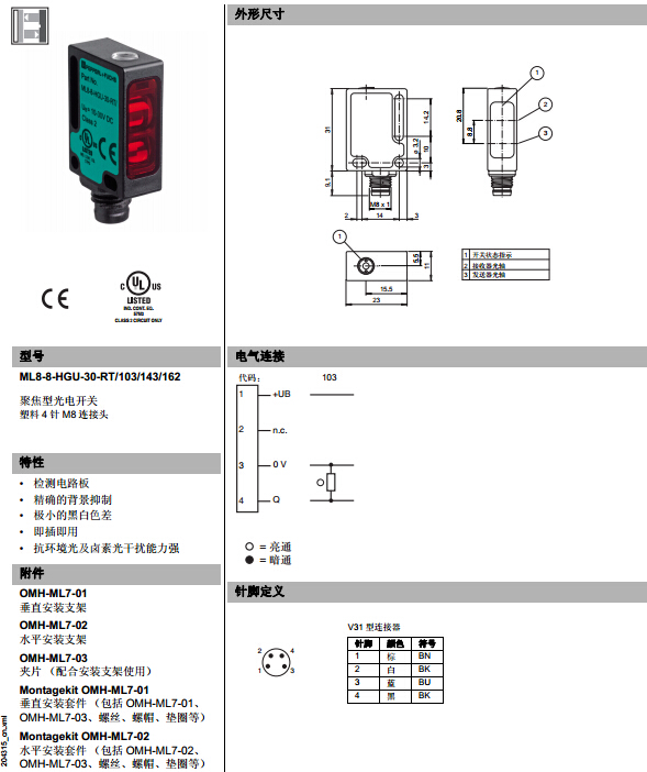 ML8-8-HGU-30-RT/103/143/162,漫反射型傳感器