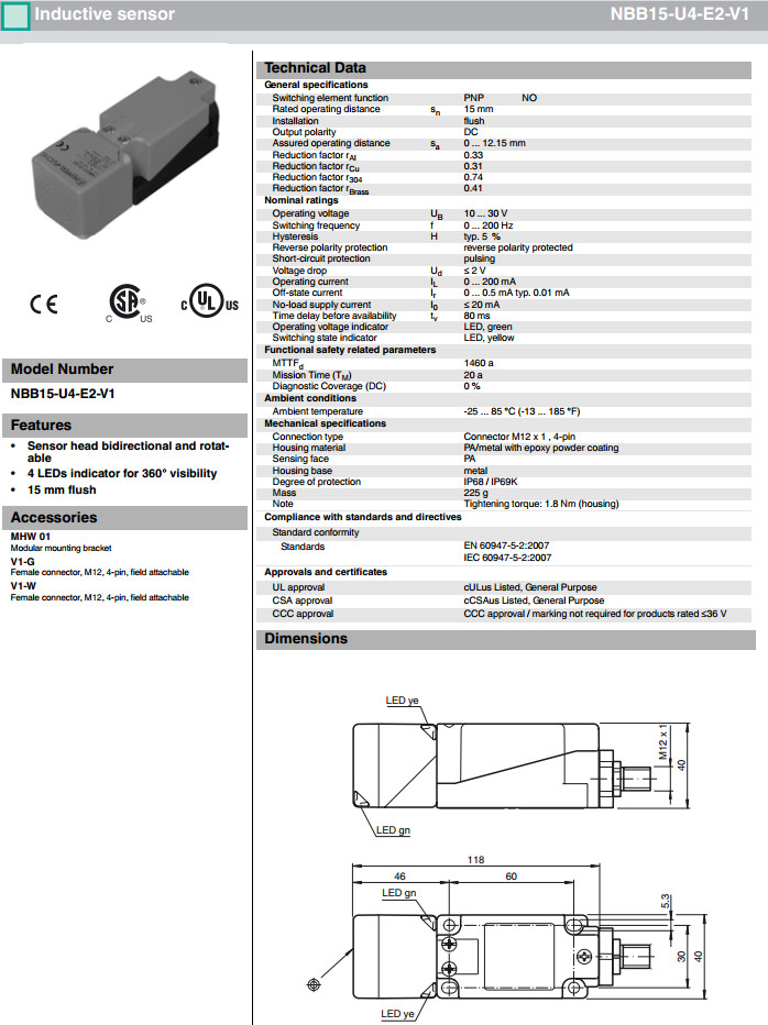NBB15-U4-E0,NBB15-U4-E2,NBB15-U4-E2-V1