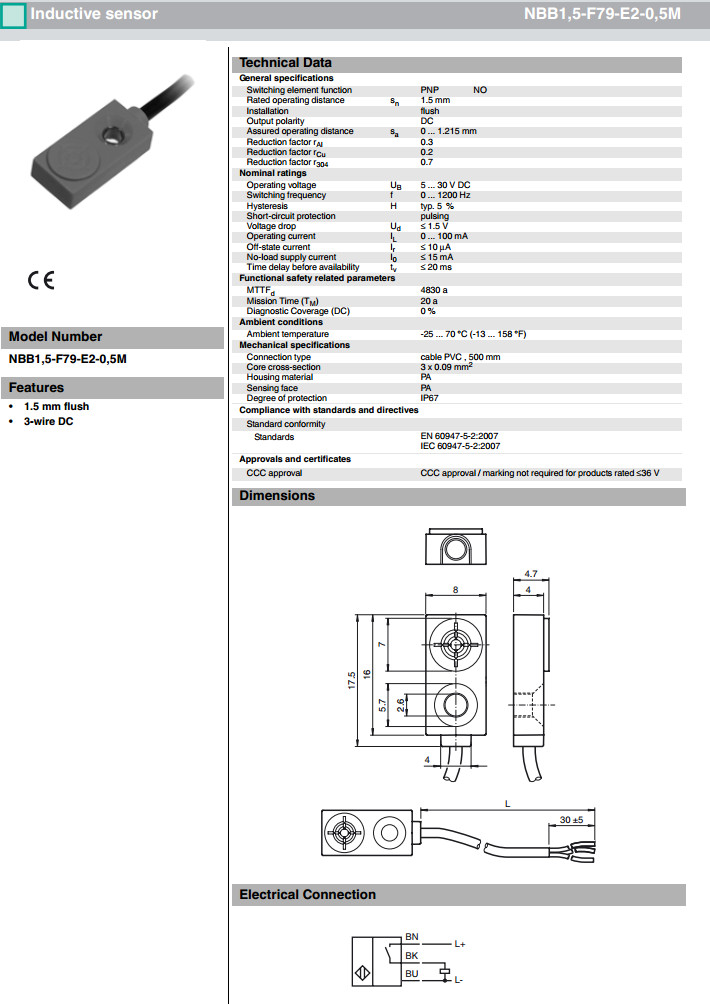 NBB1,5-F79-E2-0,16M-V1,NBB1,5-F79-E2-0,5M,NBB1,5-F79-E2-0,5M