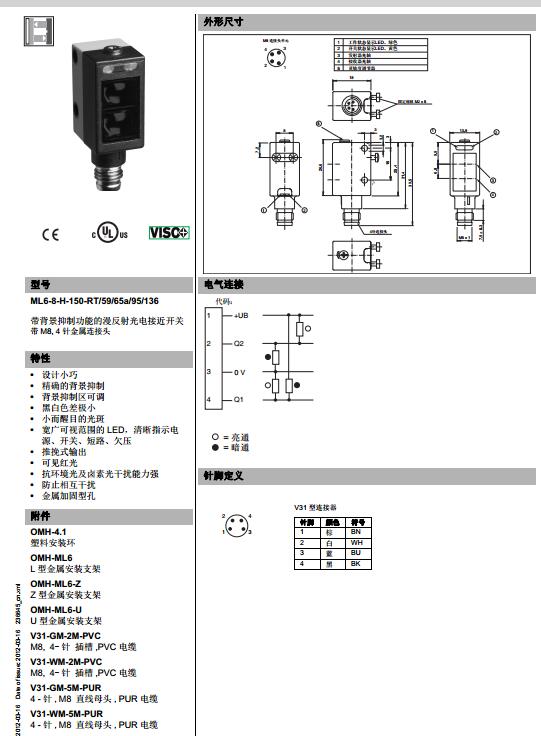 ML6-8-H-150-RT/59/65a/95/136,漫反射型傳感器