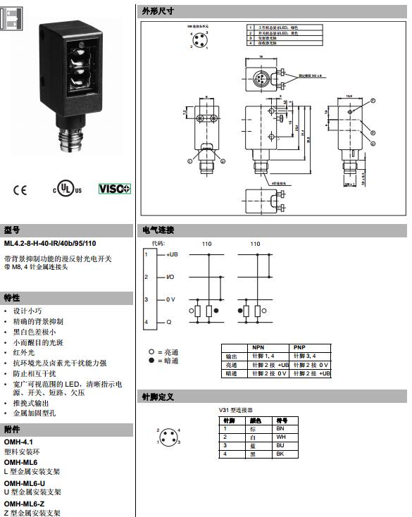 ML4.2-8-H-40-IR/DS/40b/95/110,漫反射型傳感器