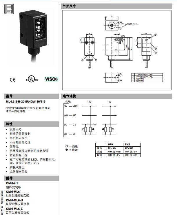 ML4.2-8-H-20-IR/40b/110/115,漫反射型傳感器