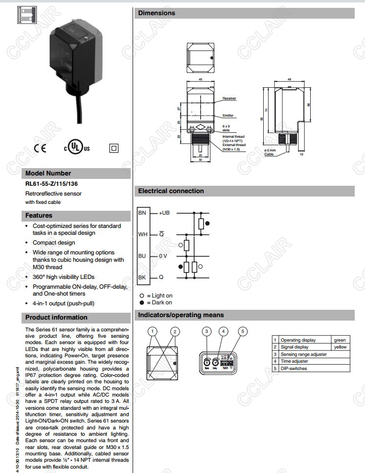 RL61-55-Z/115/127,RL61-55-Z/115/136,反射板型光電開關(guān)