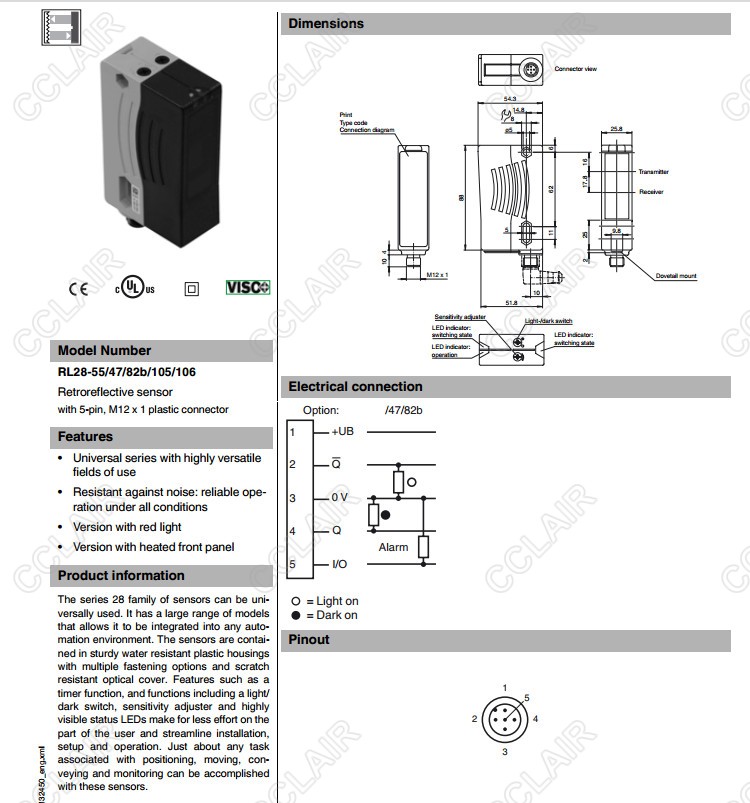 RL28-55/47/82b/105/106,RL28-55/49/76b/105,反射板型傳感器
