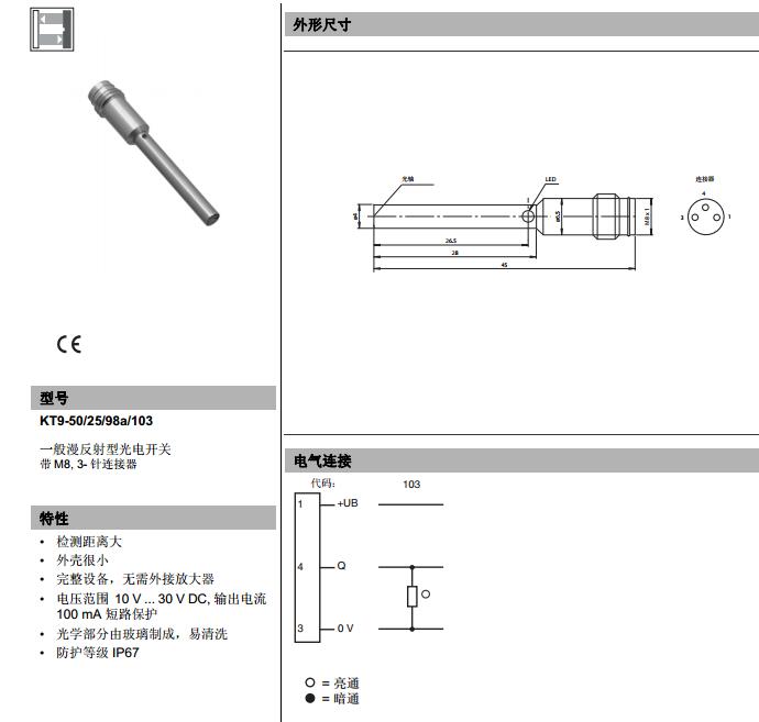 KT9-50/25/98a/103,漫反射型傳感器
