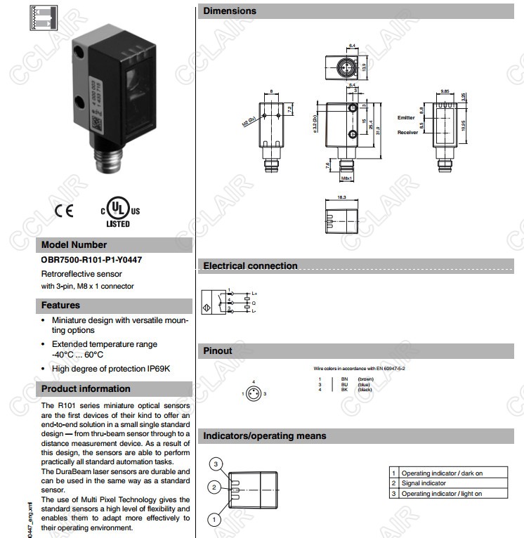 OBR7500-R101-P1-Y0447,反射板型傳感器