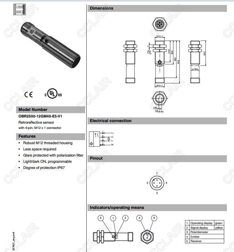 BR2500-12GM40-E5-V1,反射板型傳感器