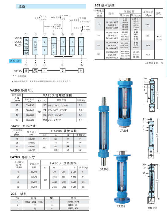 20S玻璃轉(zhuǎn)子流量計與同類產(chǎn)品比較具有測量精度高,互換性能好,連接方式多樣化,VA20S管螺紋連接,SA20S軟管連接,F(xiàn)A20S法蘭連接,精度等級互換2.5級,單標(biāo)1.5級.