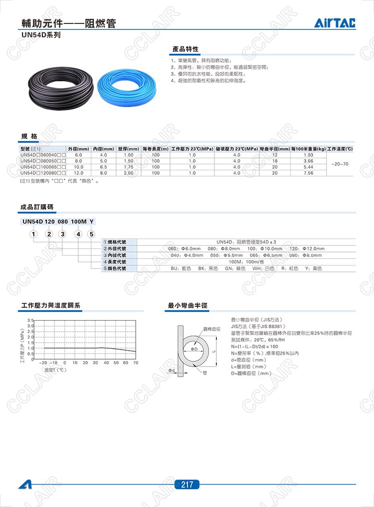 UN54D060040100MBU,UN54D060040100MBK,UN54D060040100MGN,臺灣AIRTAC阻燃管