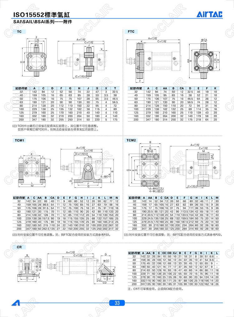 LB32,CA32,FA/FB32,CB32,CR32,TC32,FTC32,TCM132,TCM232,AIRTAC亞德客標(biāo)準(zhǔn)氣缸附件