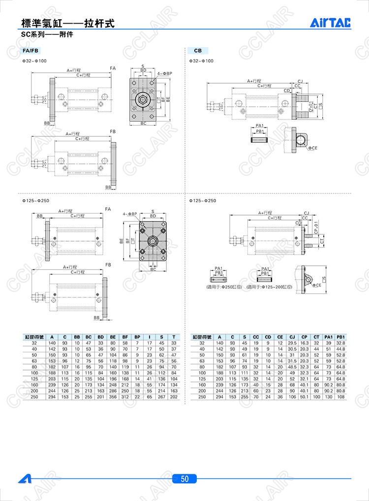 LB32,LB40,CA32,CA40,FA/FB32,CB32,CB40,TC32,TC40,TCM132,TCM140,AIRTAC亞德客標準氣缸附件