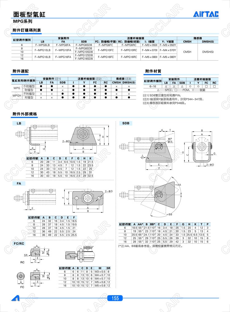 AIRTAC亞德客 面板型氣缸附件LB6,LB8,LB10,LB12,LB16 FA6,FA8,FA10,FA12,FA16 SDB6,SDB8,SDB10,SDB12,SDB16 FC/RC6,FC/RC8,FC/RC10,FC/RC12,FC/RC16
