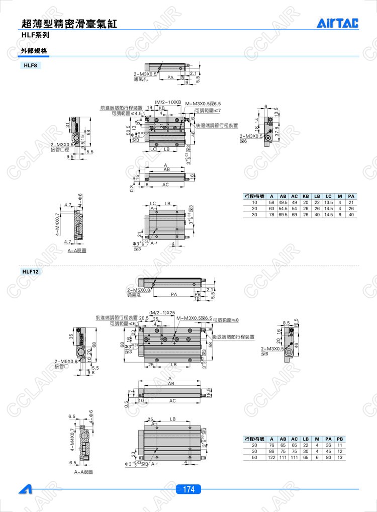 HLF8*10-S,HLF8*20-S,HLF8*30-S,HLF12*20-S,HLF12*30-S,AIRTAC亞德客超薄型精密滑臺(tái)氣缸