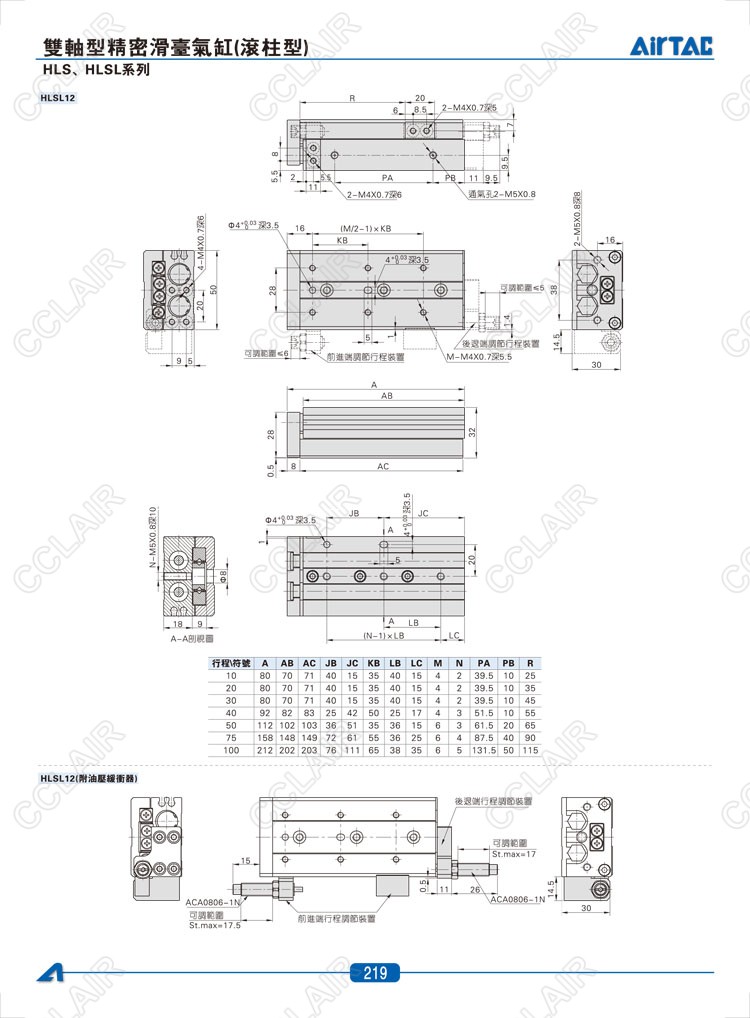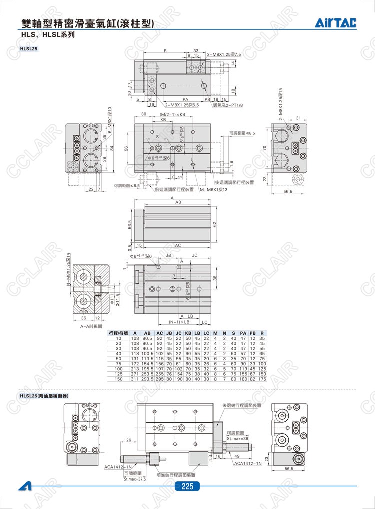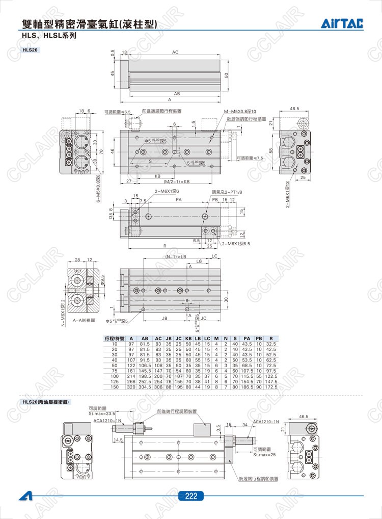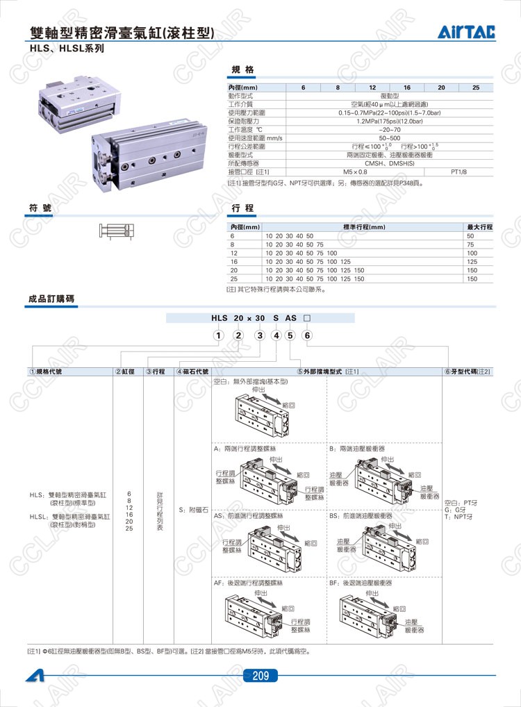 HLS6*10-S,HLS6*20-S,HLS6*30-S,HLSL6*10-S,HLSL6*20-S,HLSL6*30-S,AIRTAC亞德客雙軸型精密滑臺(tái)氣缸