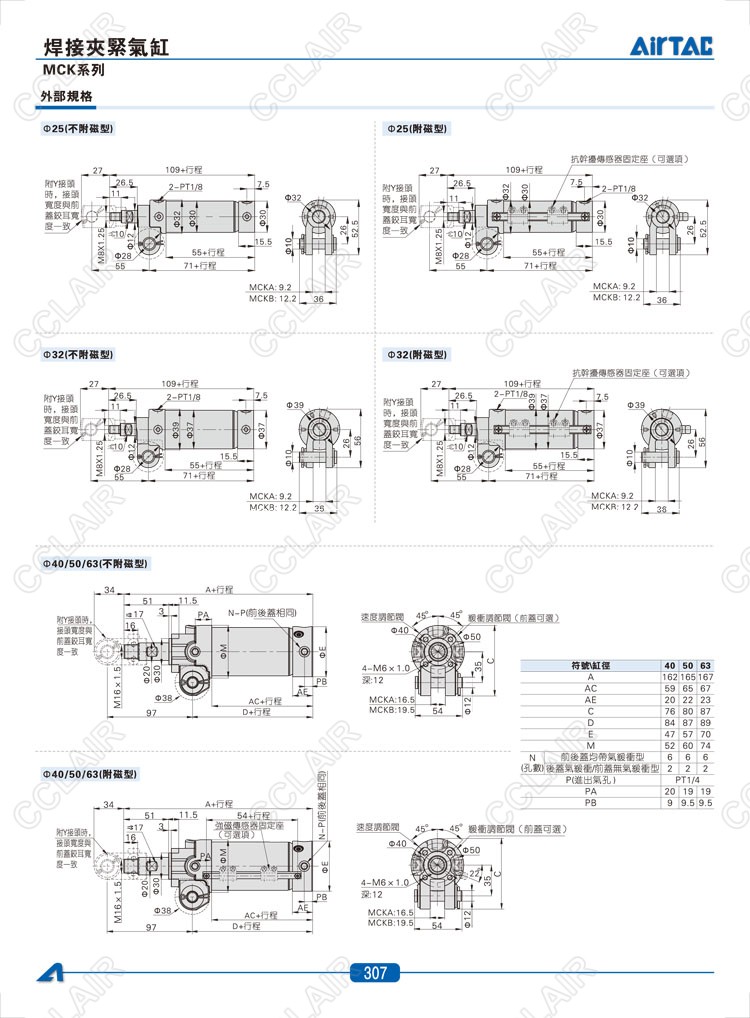 亞德客AIRTAC,MCKA25*50,MCKA25*50-S,MCKB25*50,MCKB25*50-S,MCK80*50,MCK80*50-S,焊接夾緊氣缸